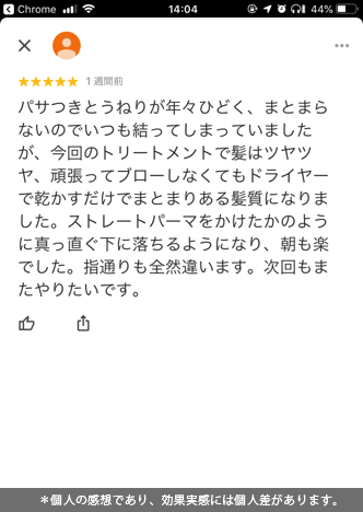 【1つ目の約束】すべてのお客様にオーダーメイドな髪質改善/縮毛矯正を